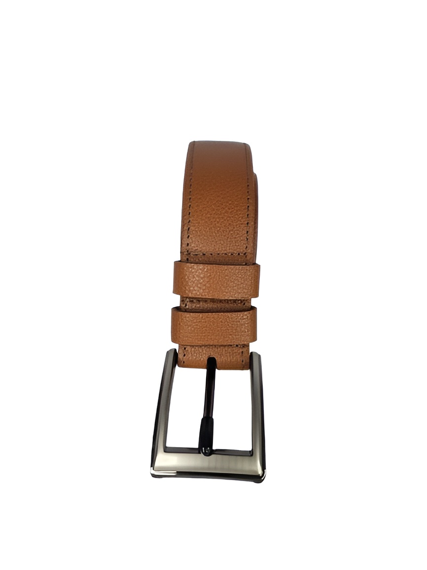 Brown leather belt with silver buckle. Great for formal and casual occasions.