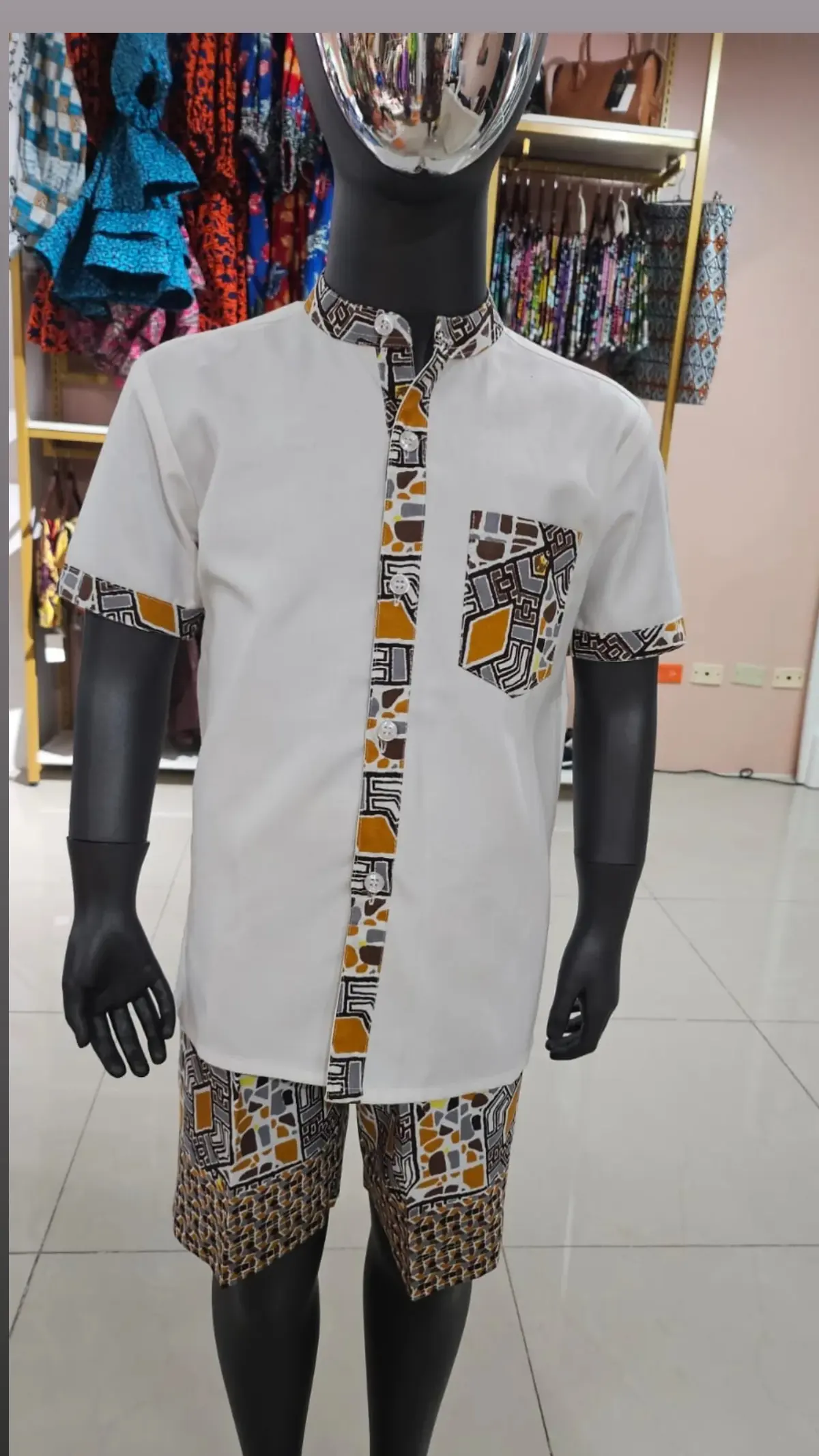 Playful, vibrant, and full of cultural flair, this boys’ short set is crafted from soft, breathable fabric for all-day comfort. The classic silhouette is elevated with bold African print trim, adding a touch of tradition to a modern design. Perfect for special occasions, family gatherings, or everyday wear with personality, this set brings joyful energy and heritage-inspired style to your little one’s wardrobe.