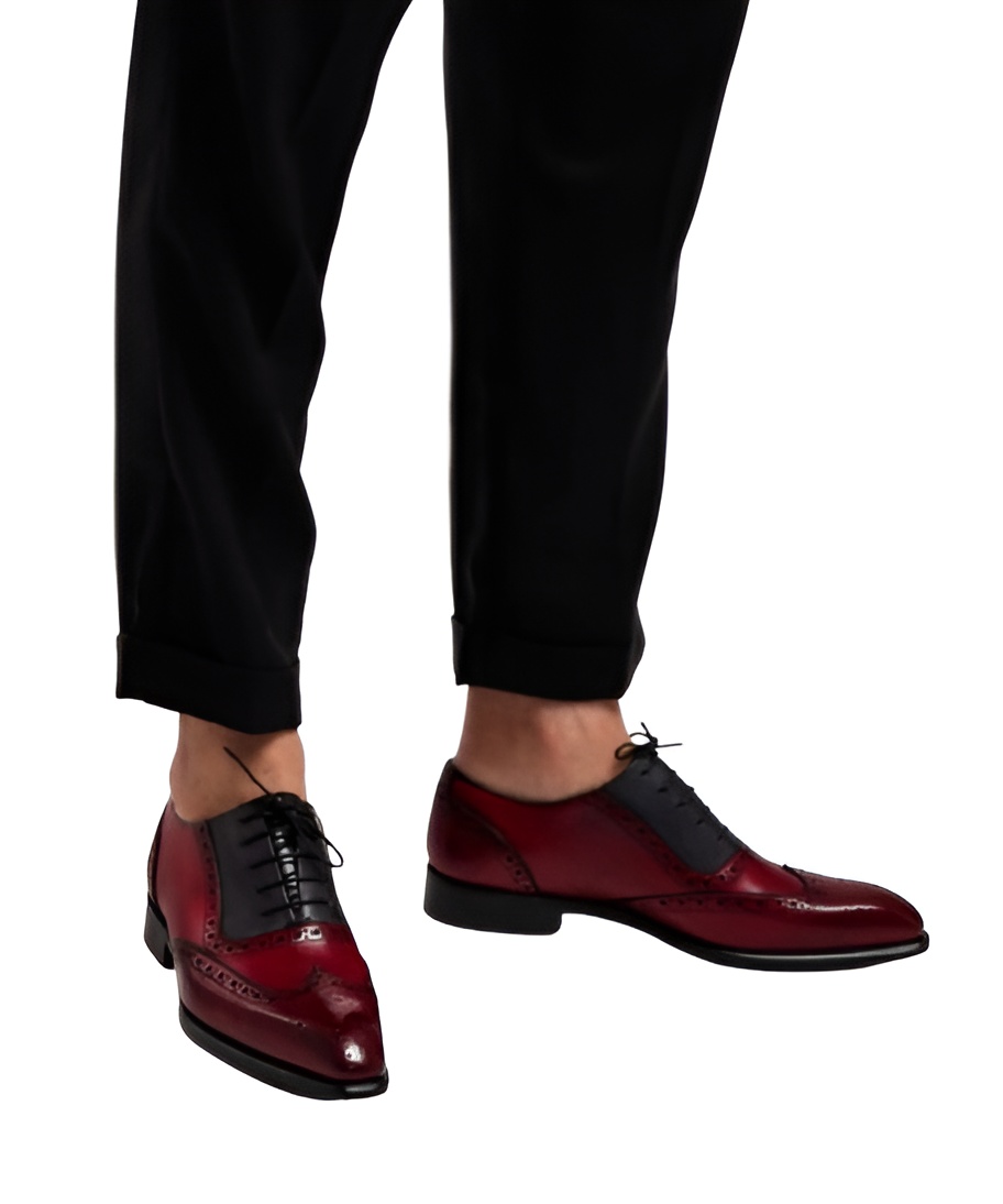 Italian Leather Two-Tone Dress Shoes – Red & Black Elegance