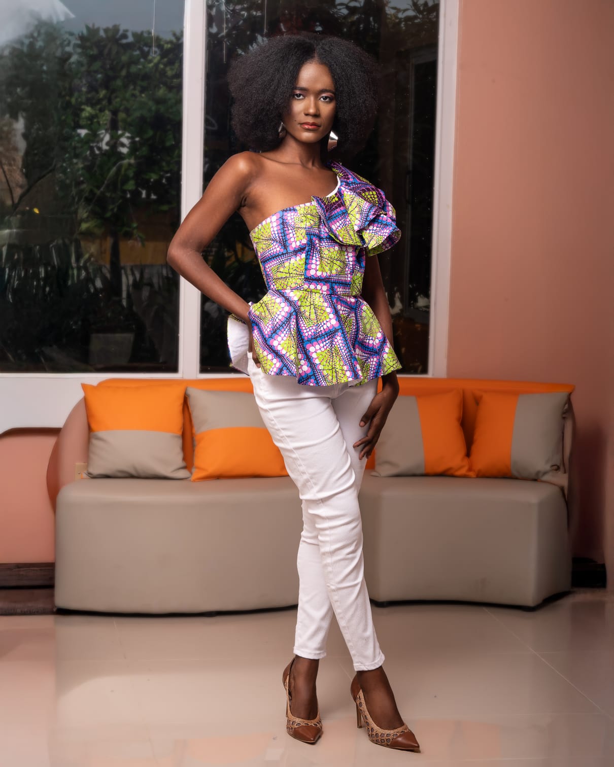 Make a bold, stylish statement with this one-shoulder top crafted from 100% African cotton and dyed with non-toxic, eco-friendly dyes. Lightweight, breathable, and rich in culture, it’s the perfect blend of comfort, sustainability, and standout design. Perfect for day or night.